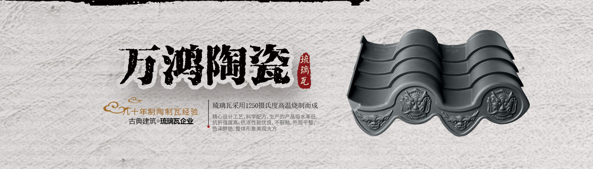 宜興市萬鴻陶瓷有限公司是國內(nèi)生產(chǎn)古建琉璃瓦企業(yè),也是宜興市琉璃瓦行業(yè)龍頭骨干企業(yè)。琉璃瓦采用1250攝氏度高溫燒制而成,公司座落經(jīng)濟發(fā)達的宜興市丁山鎮(zhèn),臨近寧杭高速公路、新長鐵路、錫宜高速和104國道,交通十分便利。  萬鴻陶瓷擁有幾十...